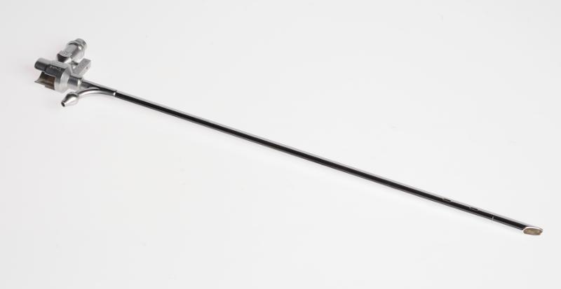 H 4895. Bronchoskop oval av metall med lamphållare märkt "Storz Germany DGM 30 cm 4 mm". L 300 mm, Diam 5 mm.
