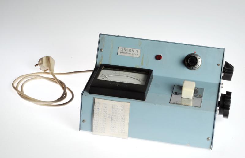• H 5675. Fotometer. "Linson 3". För kolorimetriska analyser. Av metall och plast. Märkt: "LARS LJUNGBERG & CO STOCKHOLM SWEDEN". L 280 mm Br 250 mm H 140 mm.