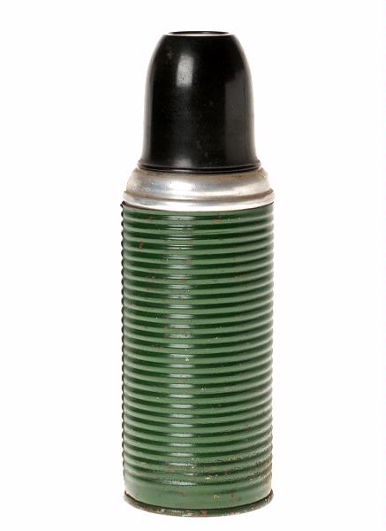• STLM 116 Termosflaska. Diam: 7 cm (botten). Höjd: 22 cm. Grön termosflaska med skruvlock. Märkt: Import.
