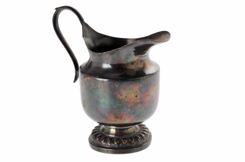 • MS 5866. Mjölkkanna på utsirad fot. Nysilver, märkt G.C. H 115 mm.
