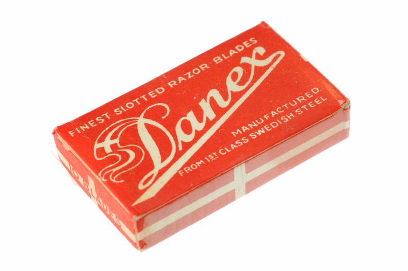 • MS 11282. Rakblad i röd/vit originalförpackning: "Danex finest slotted razor blades, 10 blades". Tillhör innehållet i förbandslåda MS 11260. Gåva av Helen Torelius Landin. 1 st utgår 2009-02-16.