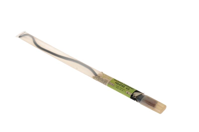 • MS 13416. Kateter. Ligger i sin sterila oöppnade förpackning. Av plast, gummi och latex. Förpackningens L 43 cm Br 3 cm. Text på förpackningen: "Sterile Baloon Catheter Folatex 60". Tillverkare steri... Visa hela