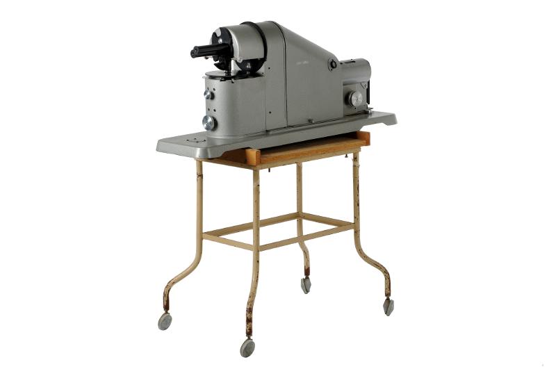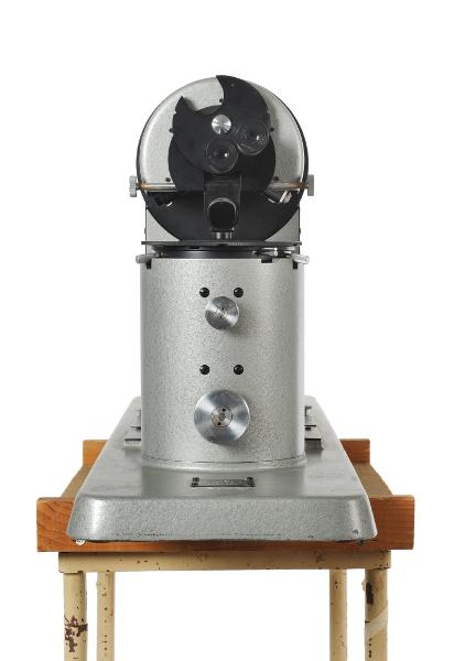 MS 13289. Mikroprojektionsapparat. Av metall. L 93 cm [svårläsligt] Br 15,5 cm H 40 cm. "Revolver" mikroprojektionsapparat med tillhörande beskrivnings- och instruktionsbok. Användes för att projicera "utstryk", dvs tunna snitt av vävnade fixerade på en glasplatta. Tillverkad av "Carl Zeiss", Oberkochen, Baden-Württemberg, Tyskland. Modell: "Revolver 2060394". Se Uppgiftsbok 109. Förvärvad 1988 (?) av Kerstin Ahldin, Röntgenkliniken i Lund. Funnen omärkt vid inventering 2009. Förvärvat från: Kerstin Ahldin, Röntgenklin. i Lund Typ av förvärv: gåva