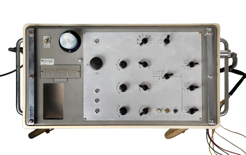• MS 13258. Mingograf. L 69 cm Br 33 cm H 100 cm. Bläckstråleskrivare med tillhörande sladdar och reglage ovanpå. Står på vagn med fyra hjul. Tillverkad under 1960-talet (?) av "Elema - Schönander". Mod... Visa hela