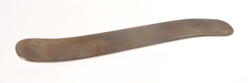 H 1.9. Tungspatel. L 16 cm Br 2,4 cm. Av rostfritt stål. "Broli". Tillvaratagen på Öron-näsa-halskliniken, Helsingborgs lasarett. Tillhör Dr. Rudmarks samling. Brukare, ägare: Dr Gunnar Rudmark, Helsingborg Förvärvat från: Öron-näsa-halskliniken, Helsingborgs lasarett Typ av förvärv: sparad