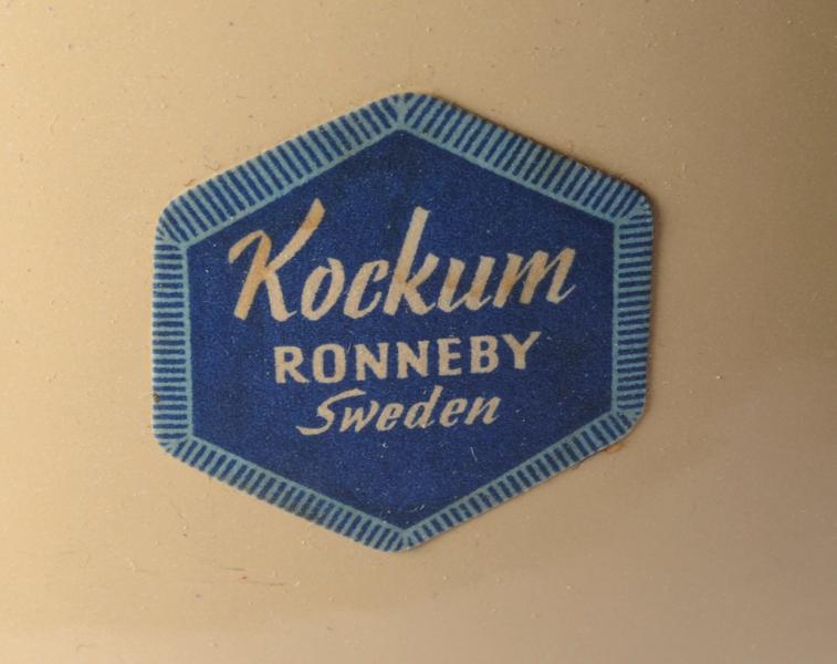 • Gul med grön rand runt mynningen och grönt handtag. Blått märke på framsidans mitt: "Kockums Ronneby Sweden".