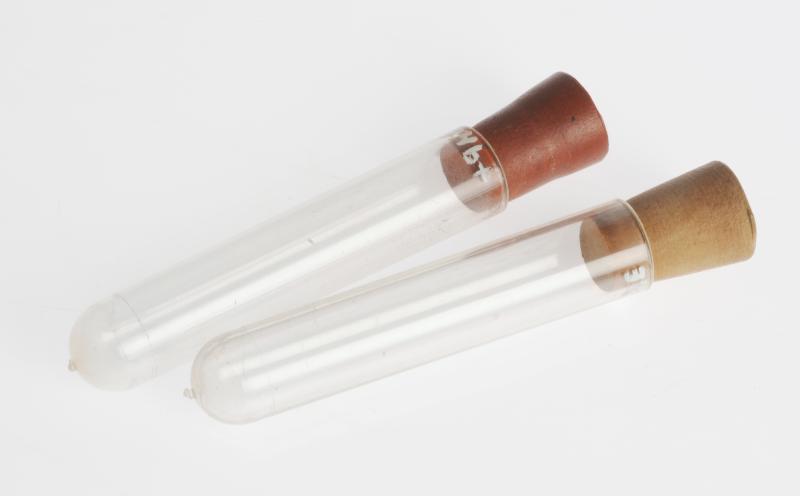 • Rektangulärt med plats för 5 st provrör. 4 st provrör med proppar, 3 st röda, 1 st svart och 1 st grå. Märkt KIFA Sweden.