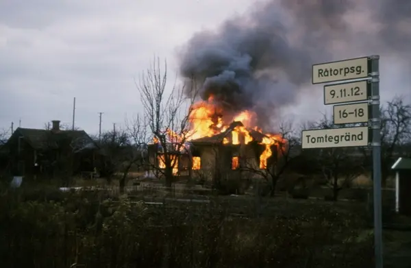 • Orig. text: Brandkårsövning. Råtorpsgatan 9, 11, 12. Tomtegränd 16-18.
