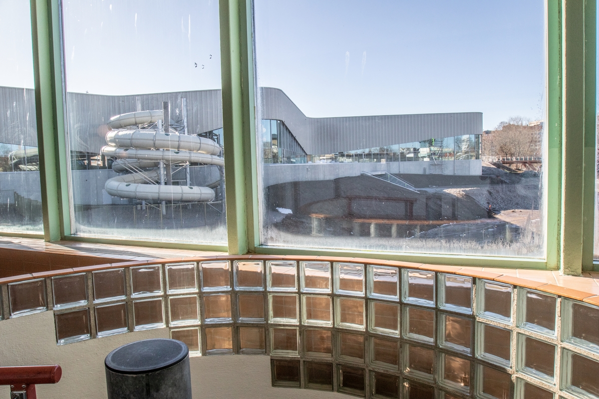 Titel <itemTitle> Vy från trapp till relaxavdelningen mot nya simhallen