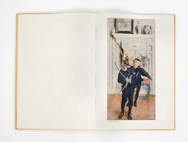 Bok "Larssons". Av Carl Larsson. Text och 32 målningar med text, motiv från hemmet i Sundborn. På försättsbladet: Till Astrid d.20.VI.25. Albert Bonniers förlag, Stockholm.
