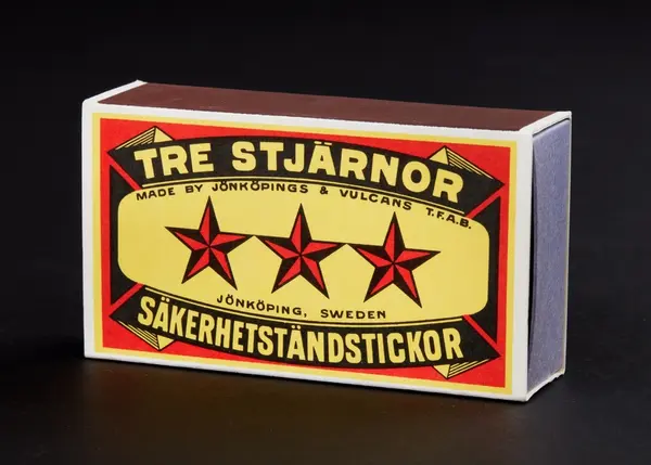 • Tändsticksask med tändstickor. Tre stjärnor, säkerhetständstickor.