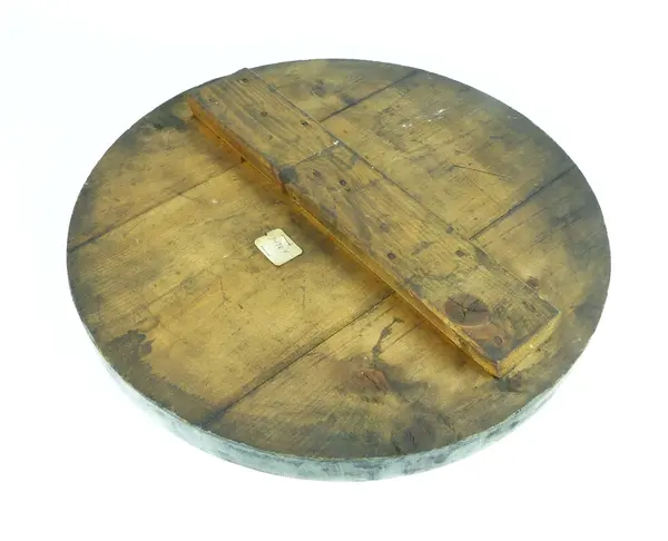 • 4: Lock som användes vid formning av av M 1438:1 Tjocklek 37 mm, Diam 455 mm. Ej modell. Grå/omålad