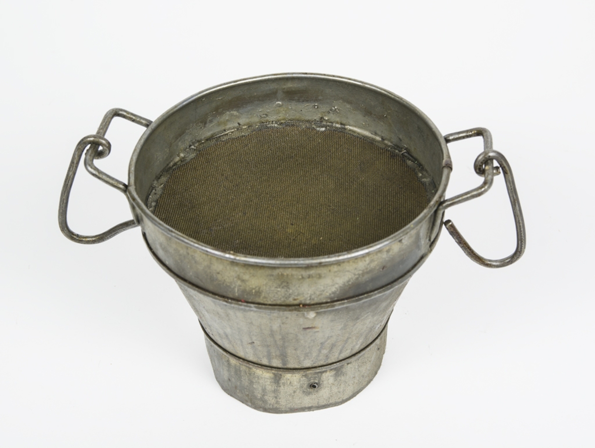 • Oljetratt med stor silduk två handtag med upphägningskrokar. Bred nederdel.