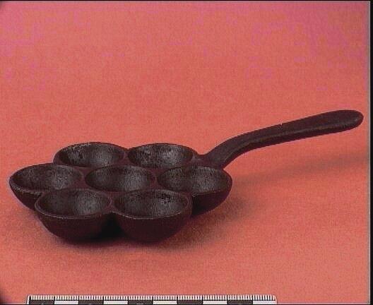 Munkpanna med handtag av gjutjärn, för sju munkar.av Gjutjärn. L. 19 cm.