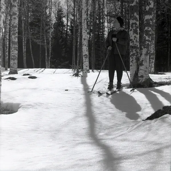 • Adéle Mickelsson åker skidor i skogen 1962.