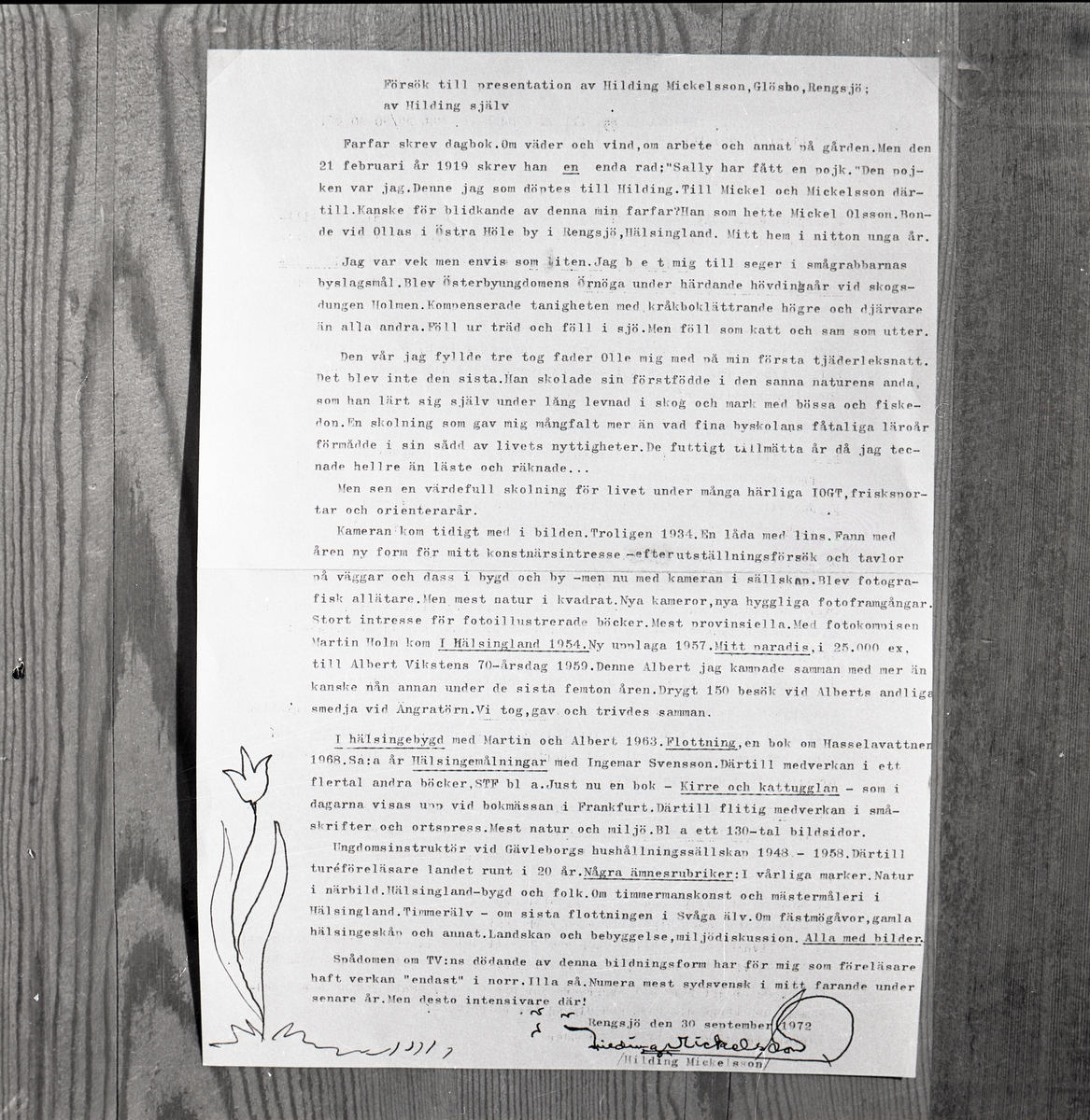 • Skriftlig presentation av Hilding Mickelsson skriven av honom själv.