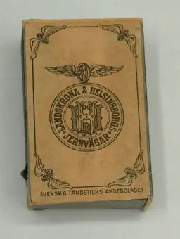 • Tändsticksask med texten "Landskrona & Helsingborgs Jernvägar"