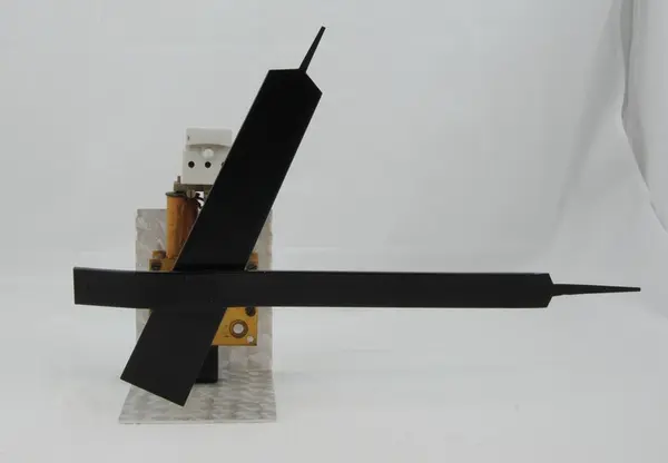 Urverk och visare till sekundärur. Märkt "Y WESTERSTRAND URFABRIK TÖREBODA". Svarta visare med lång och smal spets. 6V, 300 ohms, 1,12 watt. Två spolar märkta "150-4000-0,18 Cu. L" samt "Fuld". Längd, minutvisare: 350 mm. Längd, timvisare: 250 mm.