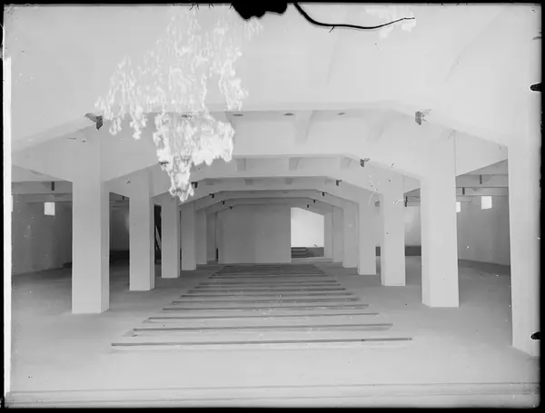 Interiör från huvudförrådet vid Järnvägsverkstäderna i Kirseberg, Malmö under byggnationen.