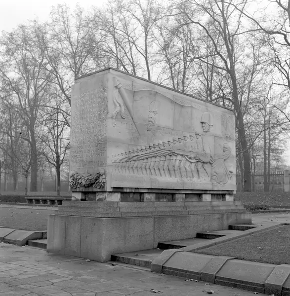Sowjetisches Ehrenmal Treptower Park, minnesmärke över de soldater från Röda Armén som stupade under striderna i Berlin april-maj 1945. Bilden tagen i samband med Statens Järnvägar, SJ Lucias besök i Berlin 1958