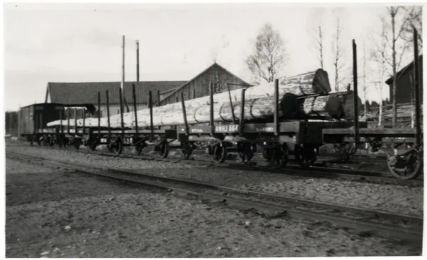 Transport av stolpar från Norrkvill station till England via Verkebäcks hamn.