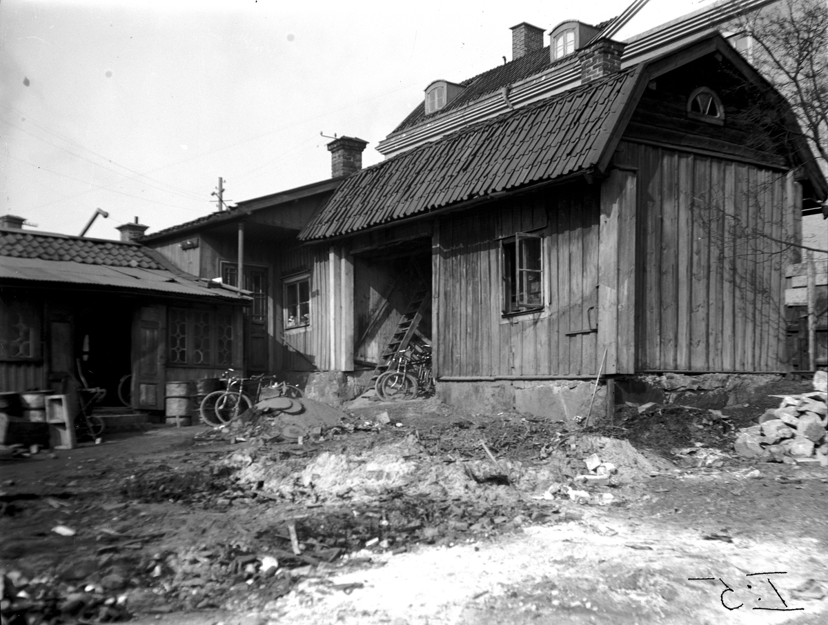 • Östra Långgatan med Barkströmska gården (Höns-Lasse). Fotograf: KJ Österberg Fotokopia finns.