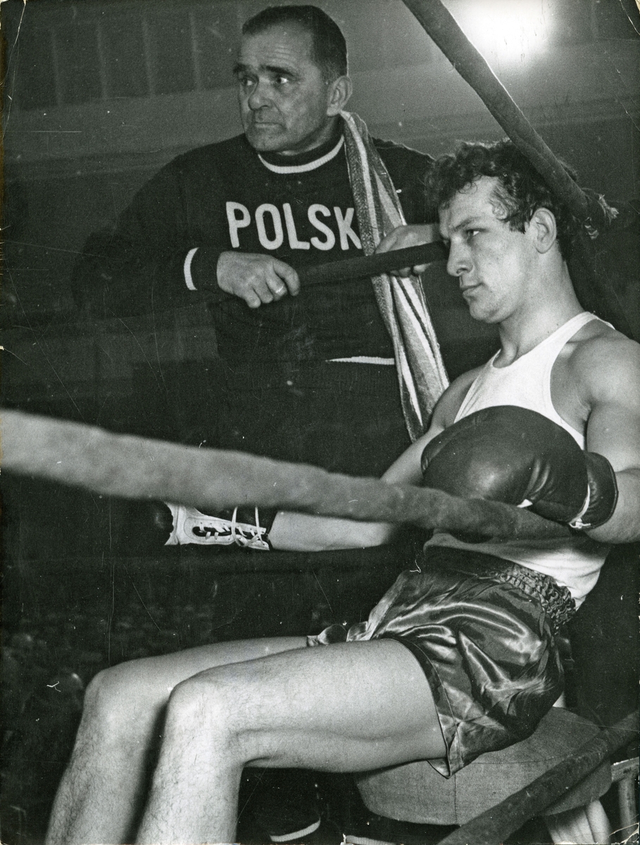 • Del av material om Köpings Boxningsklubb. Matchbild Felix Stamm o Kazimierz Pazdzior.