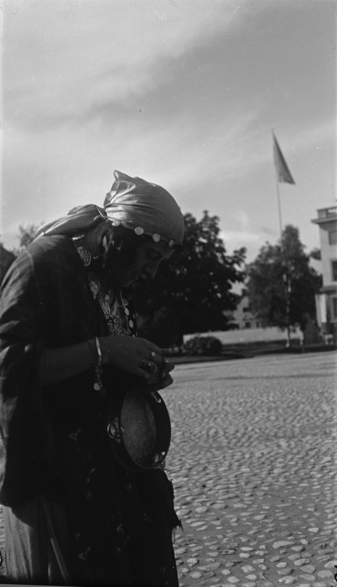Bild från förberedelserna inför festtåget på söndagen den 4 september 1932 under Barnens dag firandena. Utklädda "Zigenare". Fotograf okänd, men liknande bilder var publicerade i Köpingsposten den 5 september 1932.