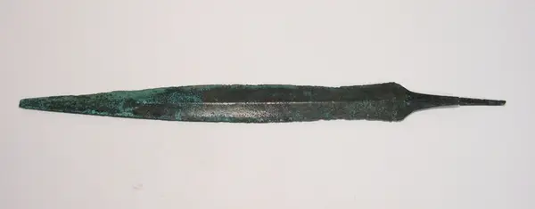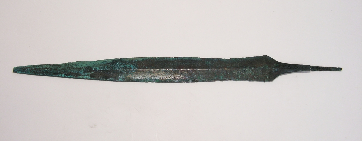 • Tångesvärd av brons. Tångedelen avbruten (se M 18156-29). Mindre del av spetsen saknas.