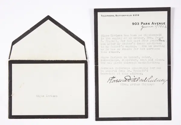 År 1927 reste Signe hem till Ingemundebo, men återvände året därpå 1928 med Svenska Amerikalinjes "Gripsholm" till New York. Hennes "Immigrant Identification Card" visar detta från den tiden.