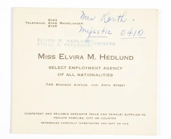Signes syster Nanny emigrerade till Amerika år 1923, och hon arbetade också i hushåll i New York. Hon gifte sig med Sture Persson från Källeskruv i Ekeberga socken. 1933 åkte de hem till Sverige för gott och bosatte sig på Stures föräldragård i Källeskruv.