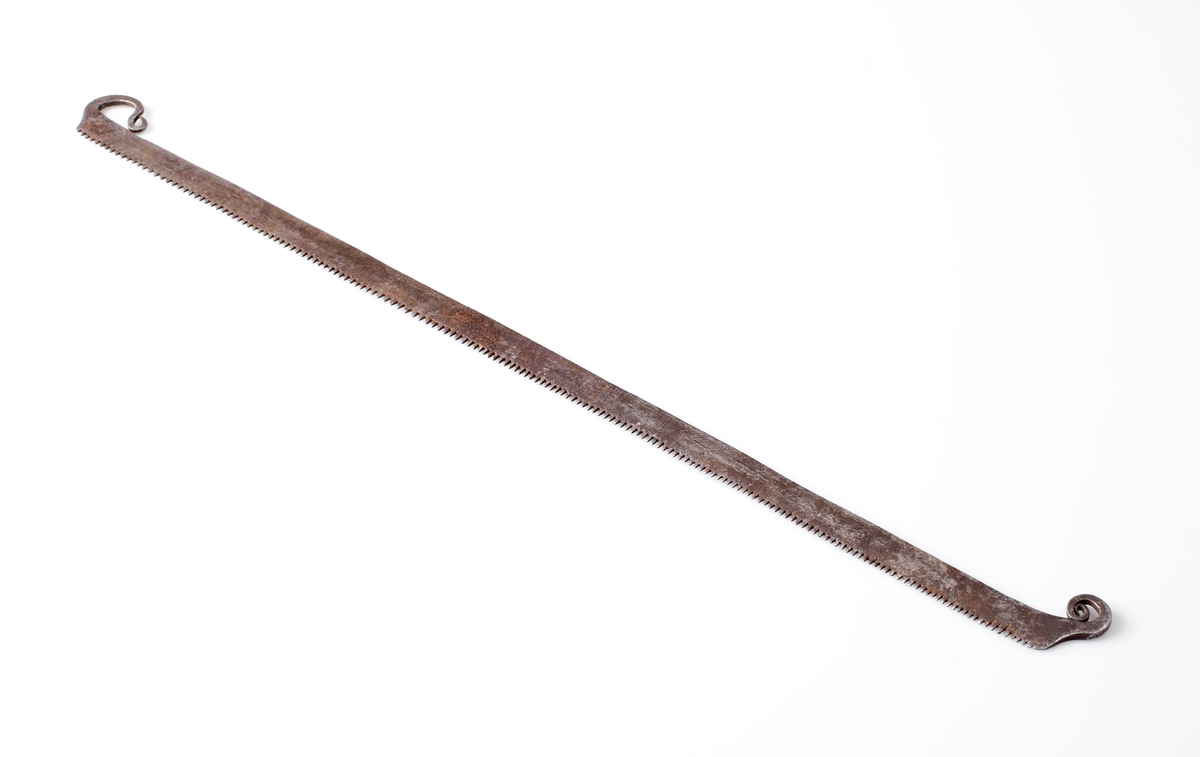 • Brödsåg av tandat smidesjärn. Bägge ändarna snirklade.