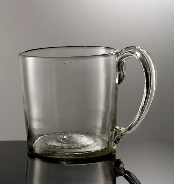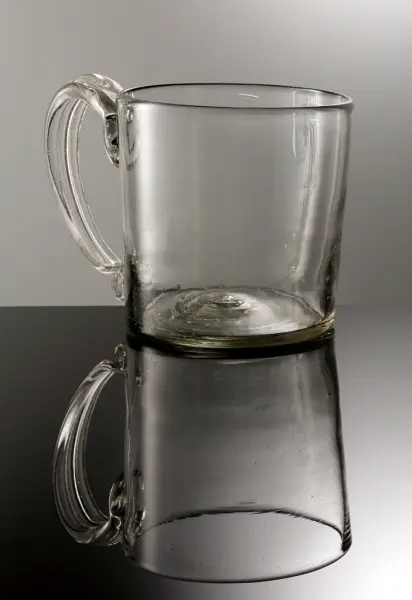 Sejdel. Möjligen tillverkad vid Limmared glasbruk under slutet av 1700-talet, eller 1800-talet. Se följande kataloger: Skönvik, Sandö, Eda och Reijmyre från c.a. 1848, samt Skönvik och Sandö c.a. 1850 (muggar grada med grepe, * kanna, =1,3 liter). Närmast cylindrisk. Påklippt grepe bestående av tre tjocka glastrådar. Puntelmärke. Något gråtonat klarglas. Massan småblåsig. Angivna mått avser övre ...