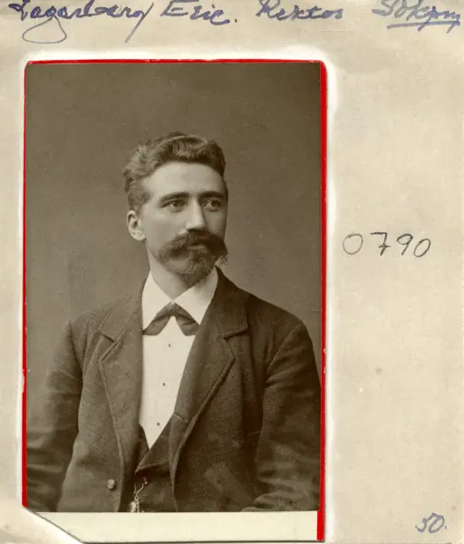 Erik Lagerberg visar exempel på att en social resa i allt högre grad blev möjlig under 1800-talet. Född i Regna 1847 som oäkta son till en hemmadotter i en mindre gård, blott 7/45 hemman. Modern gifte sig efterhand med en torparson från orten och paret blev del i hennes föräldrahem. Deras första tre gemensamma barn dog i späd ålder och familjen tycks delat samma förutbestämnda öde som de flesta med små resurser. Paret reste sig dock och kom efterhand att arrendera relativt stora gårdar, bland annat församlingens kyrkoherdeboställe. I detta lyckades Erik få studera och efter examen i filosofiska ämnen återfinns han från 1881 som vice lektor vid Linköpings läroverk. Från höstterminen 1885 var han i tjänst som tillförordnad rektor vid läroverket i Söderköping och vidare som ordinarie rektor vid lärosätet i Eksjö. Från 1881 gift med Anna Agata Eleonora Åkerblom. Här porträtterad omkring 1885.