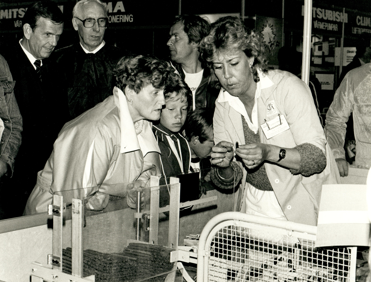 STA:s monter på Noliamässan i Härnösand, 1984. Mona Lundin, överrullare STA, demonstrerar.