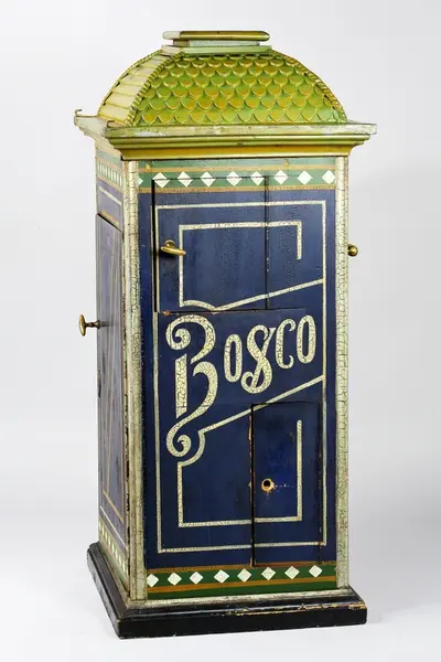 Denna fotoautomat har använts i Industripalatset på Karlavägen i Stockholm. Industripalatset var från början 1888 "Nya Cirkus" men användes från 1893 som utställningslokal för företag. Bosco-automaten patenterades av Conrad Bernitt i Hamburg 1890, i Sverige 1891 (Pat nr 3522). Automaten togs fram 1894 och såldes till många länder. Gåva till Helmer Bäckström av Fotograf W. Olsson, Kalmar, år 1936.