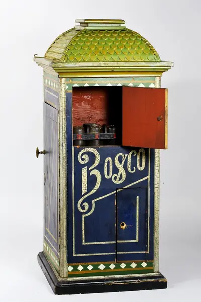 Denna fotoautomat har använts i Industripalatset på Karlavägen i Stockholm. Industripalatset var från början 1888 "Nya Cirkus" men användes från 1893 som utställningslokal för företag. Bosco-automaten patenterades av Conrad Bernitt i Hamburg 1890, i Sverige 1891 (Pat nr 3522). Automaten togs fram 1894 och såldes till många länder. Gåva till Helmer Bäckström av Fotograf W. Olsson, Kalmar, år 1936...