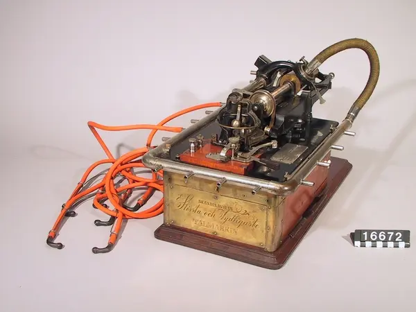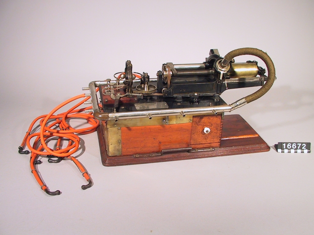 • Fonograf, "talmaskin" enligt Edison. För 14 lyssnare med slangar till öronen. Elektrisk. Ljuddosa på fonografen: nr. 13284. Skylt: "Skandinaviens största och tydligaste talmaskin".