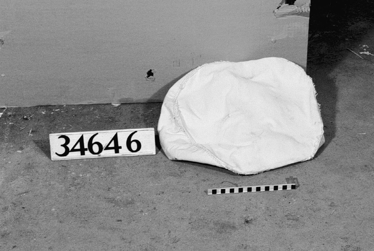 • Silduk av grovt linnetyg, vit med påsydda upphängningshylsor, till formen rund påse.