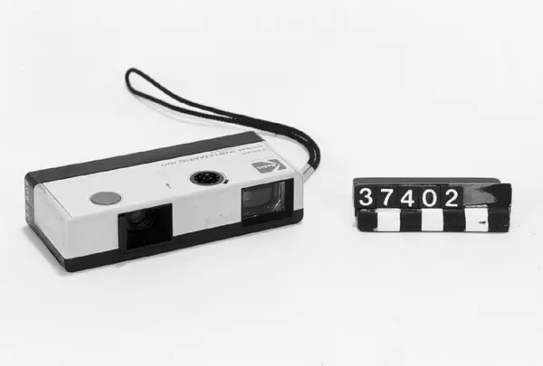 • Småbildskamera för film i kassett typ Instamatic 110, bildformat 20 x 20 mm, med fixfokuslins och synkronisering med blixt från X-kub.