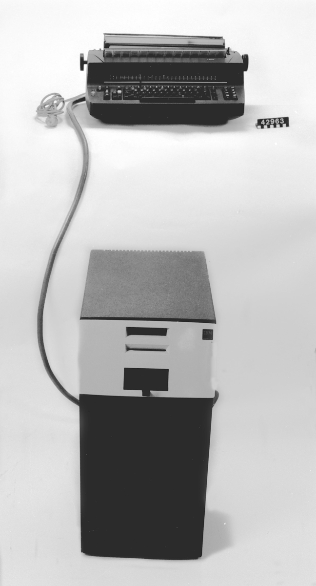 Ordbehandlare, elektrisk skrivmaskin, typ Selectric med skrivkula. Magnetkortsläsare med internt arbetsminne. Tillbehör: Magnetband, 4 extra kulor, kablage, avmagnetiseringsmagnet.