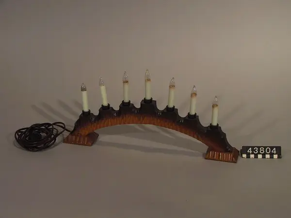 Oskar Andersson arbetade vid Philips Göteborgsfilial. Företaget lanserade den första elektriska julgransbelysningen i Sverige omkring 1930, men lamporna var inte helt anpassade till elnätens spänning som kunde variera på olika platser i Sverige. Slingor som gått sönder returnerades till tillverkaren där Oskar Andersson tyckte det var synd att kasta trasiga lampor och experimenterade med att göra en elektrisk ljusstake. Han modifierade en ljusstake för stearinljus och 1934 tändes den elektriska staken för första gången. Han gjorde enstaka exemplar till vänner och bekanta på fritiden. Werner Simonson, också vid Philips Göteborgsfilial, gjorde en prototyp med samma princip och tog till huvudkontoret i Stockholm 1937, men fick först inte stöd för att utveckla den till en produkt. En försöksserie på 3000 ljusstakar togs fram samma år och såldes slut. Året därpå gjordes 6000 stakar som också såldes slut. Första modellen av elljusstake i handeln kom 1939 . Sjölander i Värnamo tillverkade trädetaljerna. Givaren är gift med uppfinnarens dotter. Detta exemplar är ombyggt, renoverat och använt till 2001.