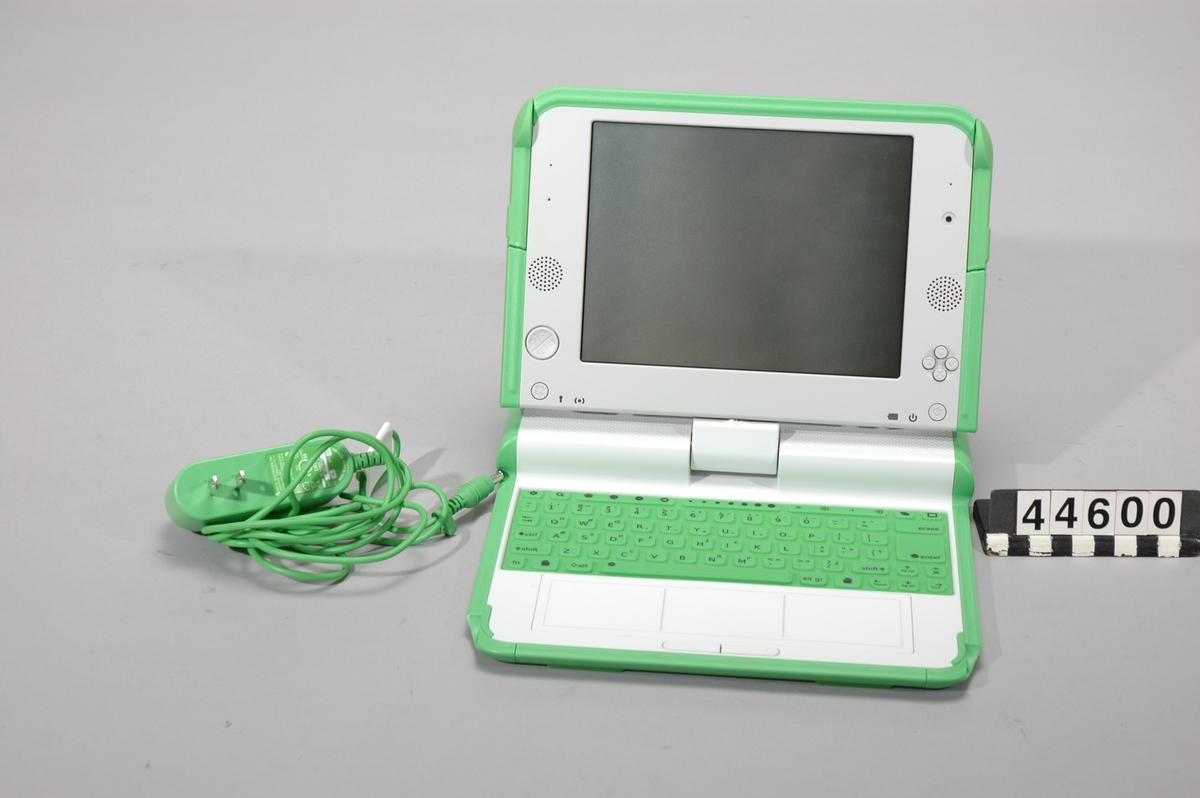 Bärbar laptop-dator, med originalkartong, laddare och bruksanvisning. Datorn har ingen hårddisk eller CD-läsare. Lagringsminnet är 1024 MB flashminne men extra minne eller diskar kan anslutas via USB. Den har inbyggd webbkamera och mikrofon. Man kan använda den hopvikt som e-bok, med kontroller för att bläddra vid skärmen. Gränssnittet är anpassat för barn och lämnar den traditionella skrivbords-...