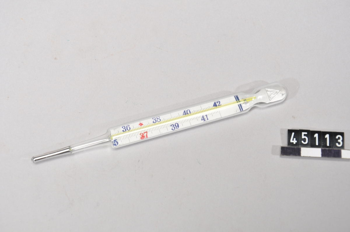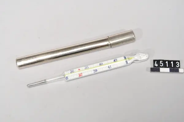 • Febertermometer i metallhylsa. Märkt Eru, kontrollnummer 7116.