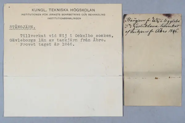 • Detta ingår i en samling prover från KTH som togs emot 1963 men inte katalogiserades.