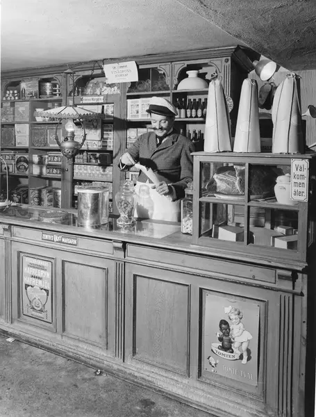 Sekelskiftets diversehandel på LO-utställningen- rekonstruktion av en butik som tillhörde Kooperativa föreningen Pan i Malmö, där Per Albin Hansson arbetade som handelsbiträde.