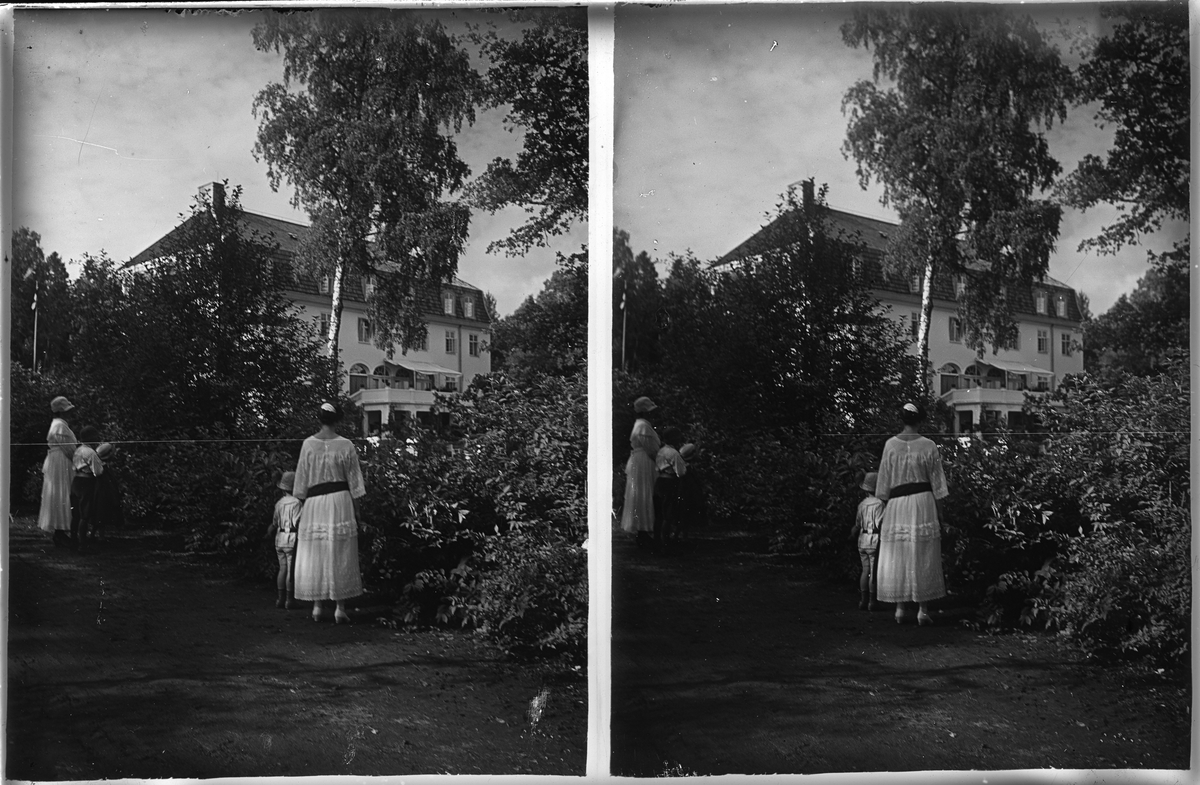 • Stereonegativ med motiv kvinnor och barn vid okänd herrgård.