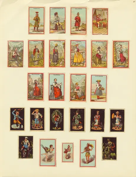 Etiketter för tändsticksaskar, från Svenskt Industri- och Handelsmuseum. (Landskapsdräkter).