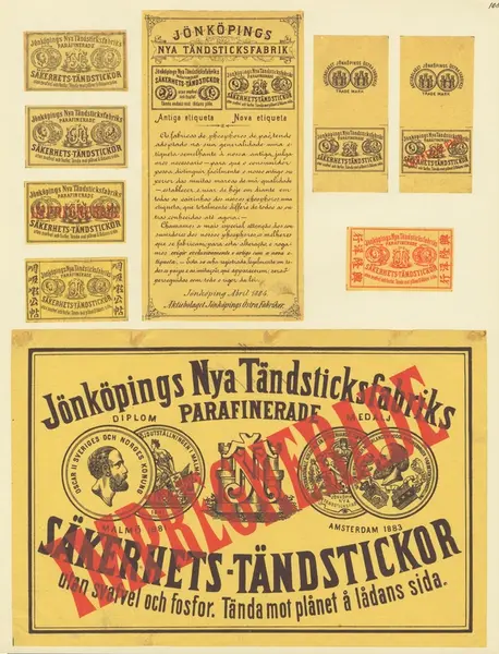 • Etiketter för tändsticksaskar, från Svenskt Industri- och Handelsmuseum.