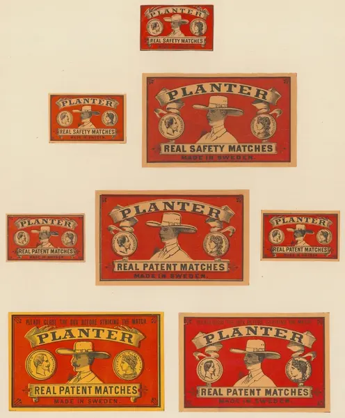 Etiketter för tändsticksaskar, från Svenskt Industri- och Handelsmuseum.Geografi. Planter.